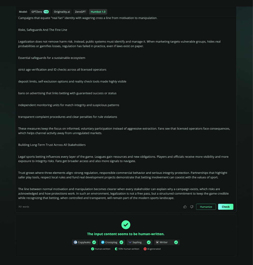The line between normal motivation and manipulation becomes clearer when every stakeholder can explain why a campaign exists, which risks are acknowledged and how protections work. In such an environment, legalization is not a free pass, but a structured commitment to keep the game credible while recognizing that betting, when controlled and transparent, will remain part of the modern sports landscape.